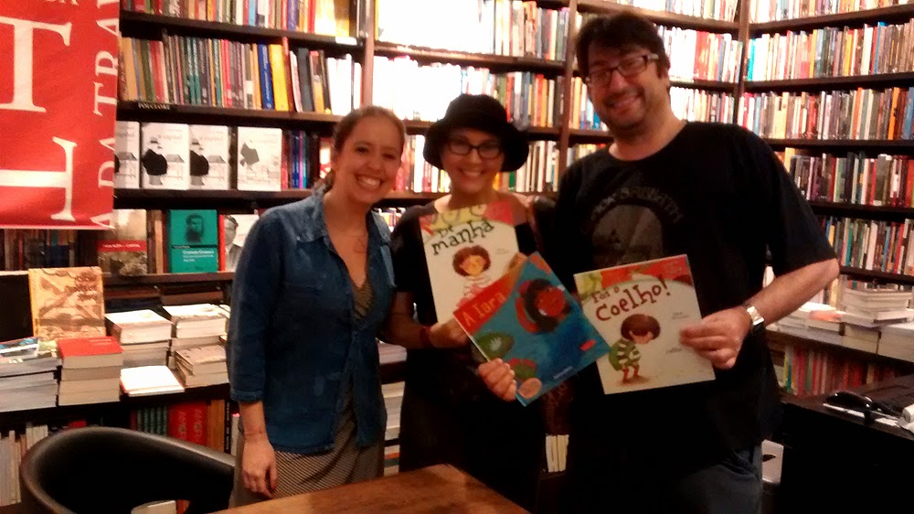 22/03 - No lançamento duplo da Taline Schubach na Livraria da Travessa. Os livros "De manhã" e "Foi o coelho", ambos da Callis, estão lindos. E ainda teve biscoito Globo pra comer na fila!